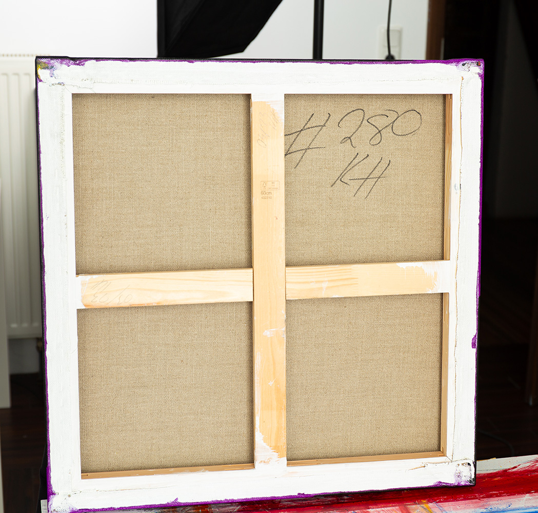 Gemalt mit violetten und schwarzen hochwertigsten Pigmenten in einer speziellen Acryldispersion. weitere Informationen